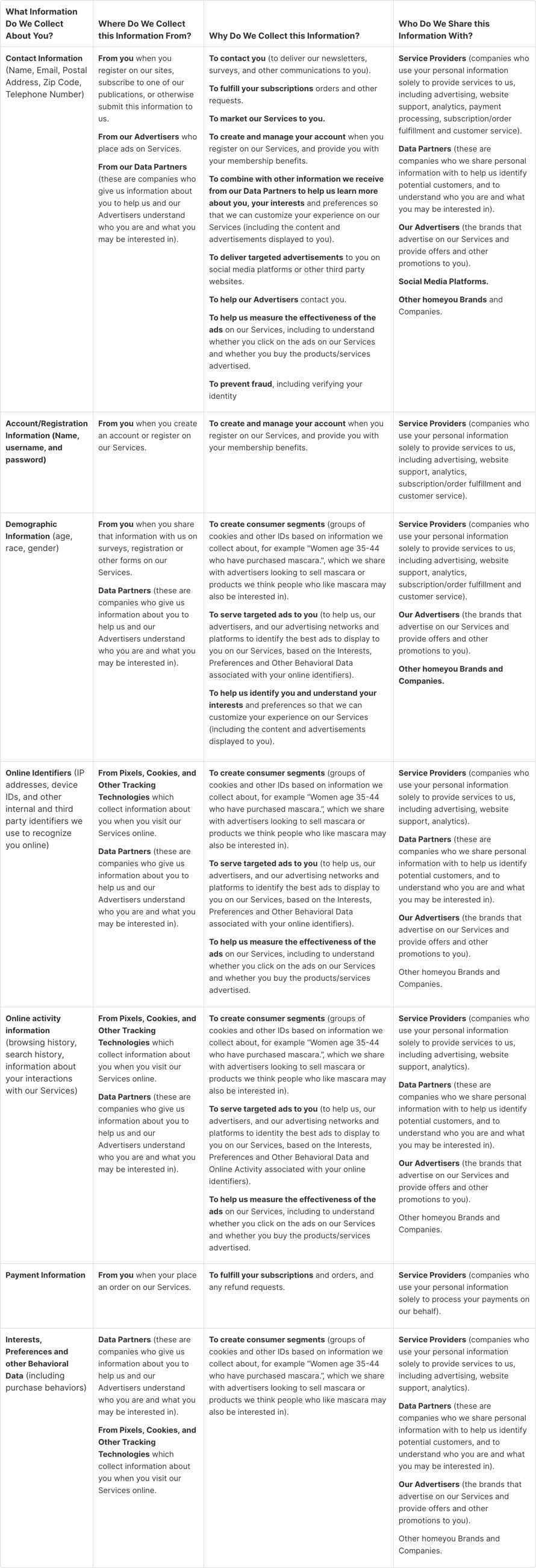 What Information Do We Collect About You? | Where Do We Collect this Information From? | Why Do We Collect this Information? | Who Do We Share this Information With? |